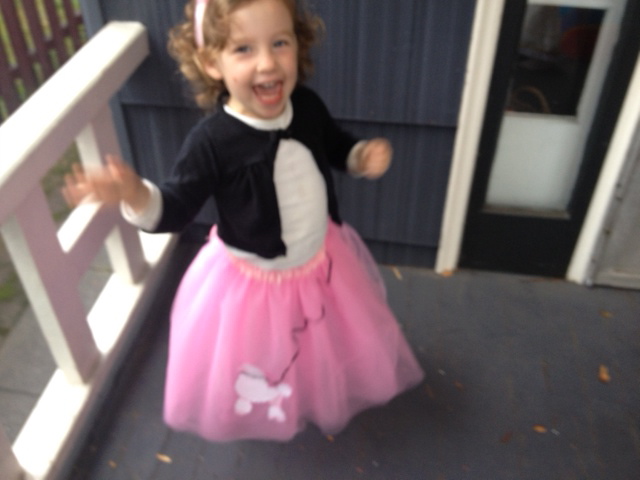 I made a puppet theater on the other side but didn't take a picture of it for some reason. It can barely be seen through the front door here. By using both pieces, Sophie has a house with a front and a back. I love these glove animal puppets that I found at CP Toys.